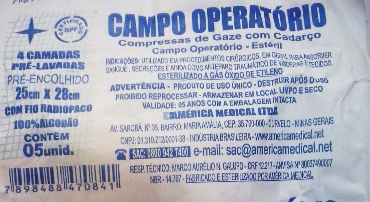 Compressa de Gaze com Cadarço Campo Operatorio - Estéril America Medical