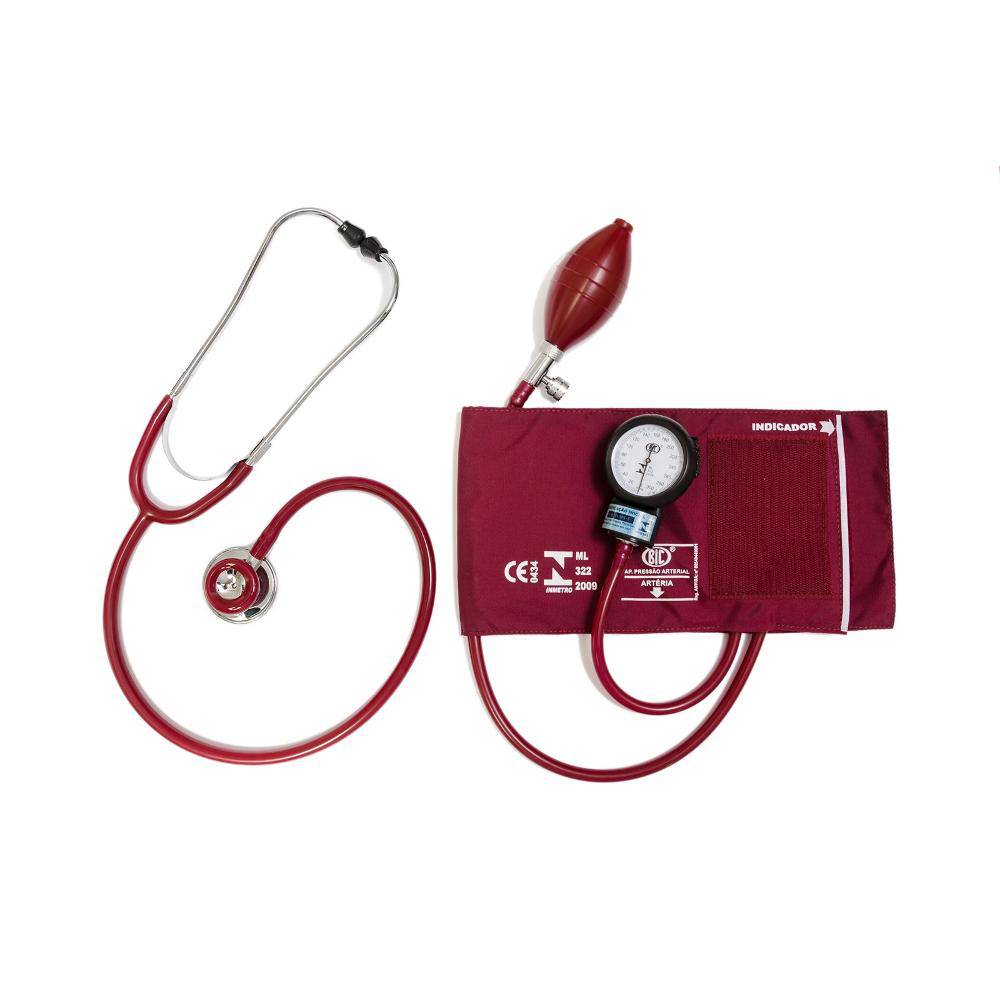 | ESFIGMOMANÔMETRO ANERÓIDE - Cor: Preto,Vermelho,Verde,Vinho,Rosa... - Fecho: VELCRO; - Medida do Manguito: 12,0 x 22,5 cm; - Tamanho da Braçadeira: 18 a 36cm; - Registro Esfigmomanômetro no Ministério da Saúde: 80540449001. ESTETOSCÓPIO DUPLO ADULTO - Cor: Preto,Vermelho,Verde,Vinho,Rosa... - Modelo: Adulto; Registro Estetoscópio no Ministério da Saúde: 80540449002. |
